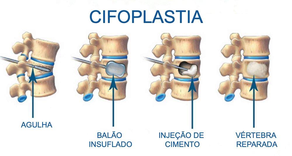 A cifoplastia é indicada para pacientes que não respondem ao tratamento conservador e continuam a apresentar dor severa ou deformidade vertebral.