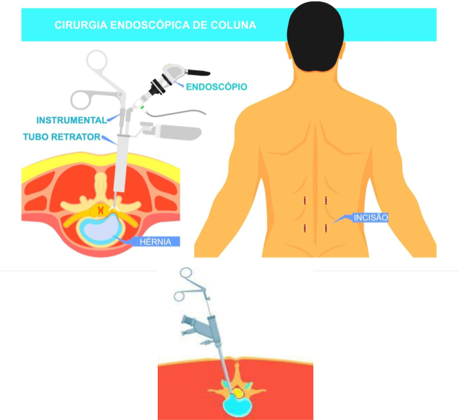 cirurgia endoscópica para hérnia de disco é realizada por um neurocirurgião especializado e envolve os seguintes passos: