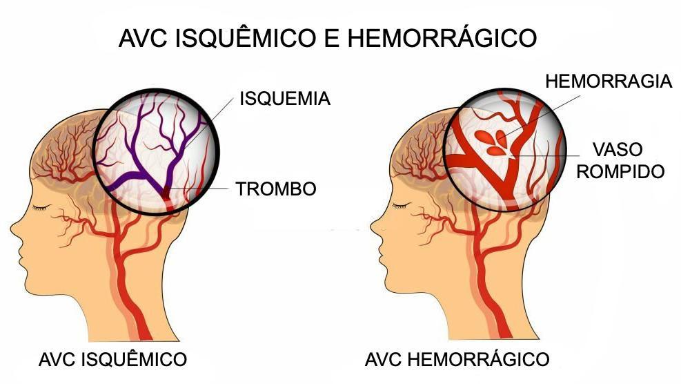 - Embolia: coágulo que se forma em outra parte do corpo (geralmente no coração) e viaja para o cérebro, bloqueando um vaso.
