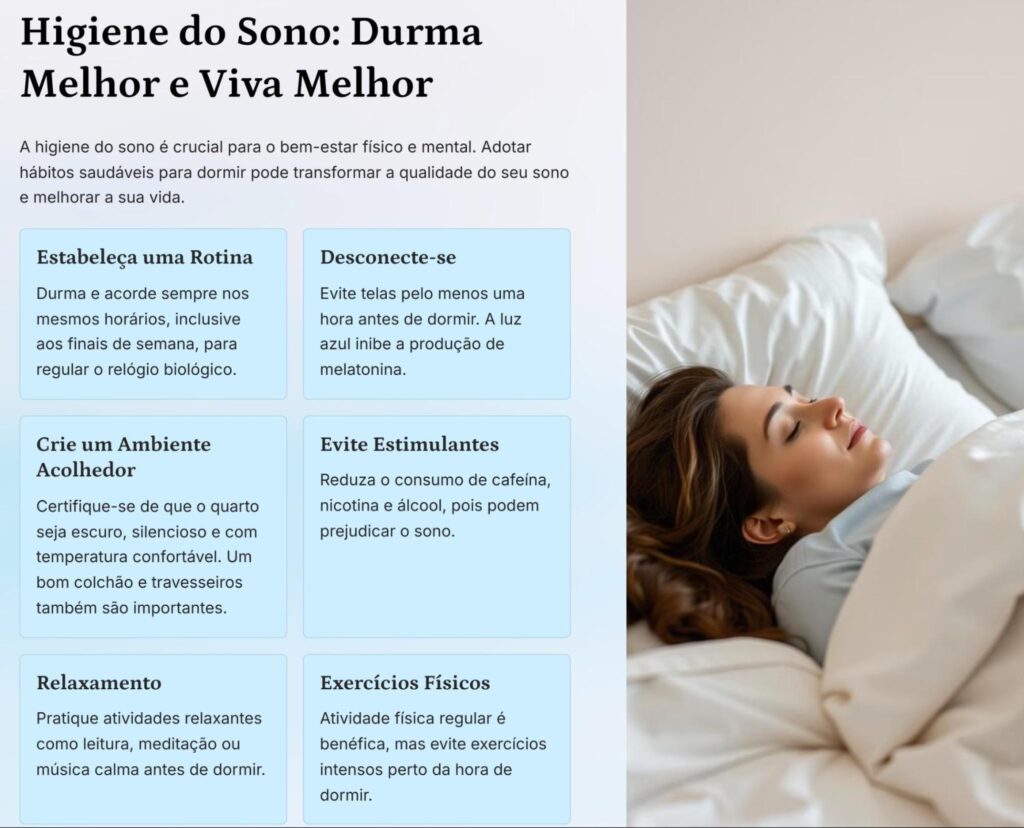• Maus Hábitos de Sono: uso de dispositivos eletrônicos antes de dormir, horários irregulares ou ambientes inadequados.